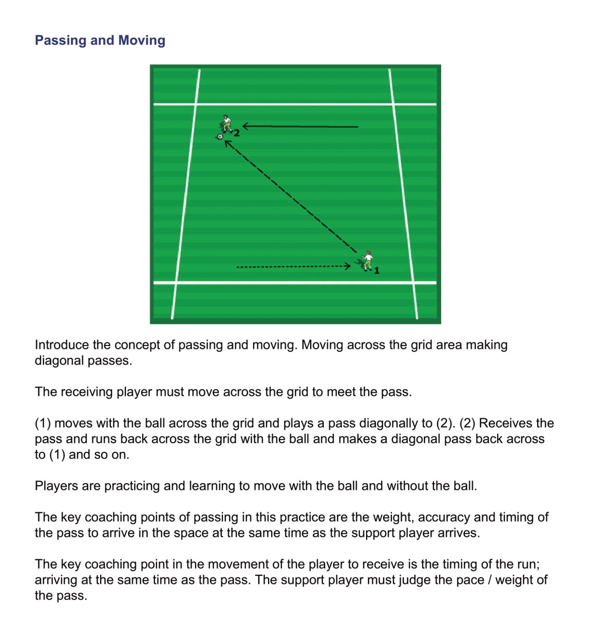 Combination play and passing are directly linked and are dependent on each other.  Well timed passing combinations are required in the break down of defensive lines.  These passing drills provide a focus on combination play. Passing is undoubtedly the most important skill in the game.