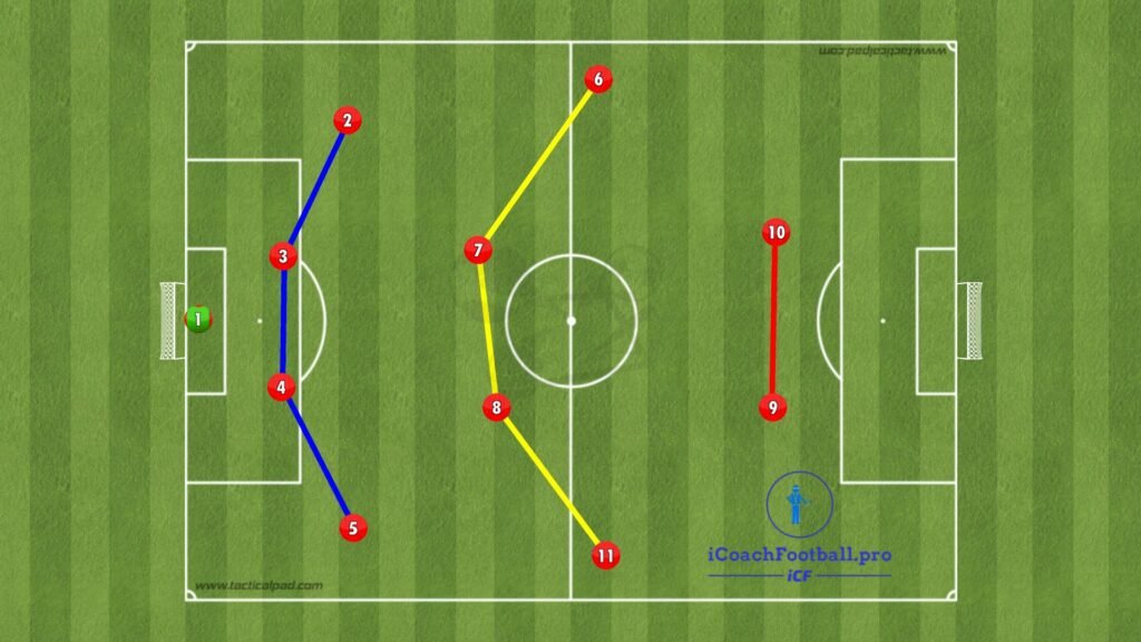 The back four in the 4-2-3-1 formation consists of two center-backs and two full-backs. The center-backs are tasked with marking the opposition’s forwards and preventing goal-scoring opportunities, while the full-backs have dual roles: they must defend against wingers and also support attacking plays by providing width and delivering crosses into the opponent’s penalty area.